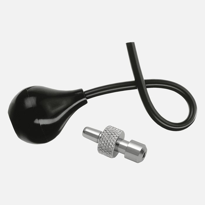 The HEINE mini 3000 LED F.O. otoscope includes an insufflation port. This port allows connection of an insufflation connector with a rubber bulb for performing pneumatic tests to evaluate tympanic membrane mobility. By directing air through the port, the physician can determine the presence of middle ear fluid, inflammation, or other pathologies affecting hearing.