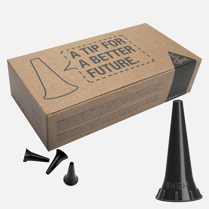 By choosing the HEINE mini 3000 LED F.O. otoscope, you not only opt for quality but also demonstrate responsibility. The disposable HEINE AllSpec ear tips are made from recycled plastic, emphasizing a commitment to a sustainable future while maintaining high diagnostic standards.